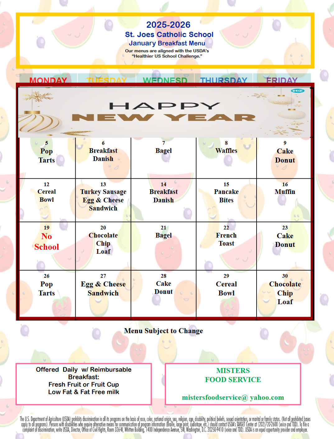 January Breakfast Menu